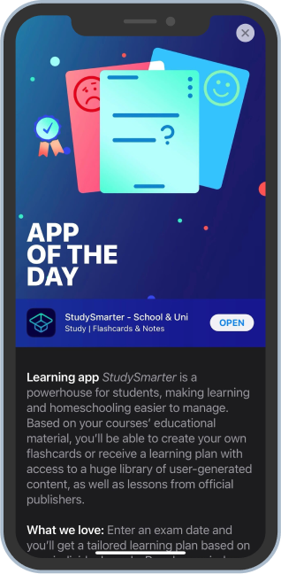 From automatic learning plans to creating and sharing summaries, flashcards and much more – with StudySmarter you’ve got everything in one app. You’ll see preparing for your exams was never this easy and efficient.